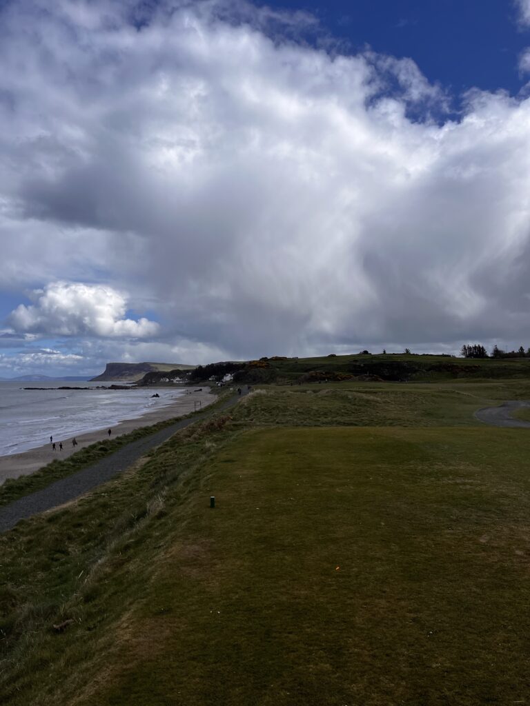 Ballycastle is a fantastic course. with the first 5 holes a parkland layout it doesn’t really reveal what the course truly becomes until you cross the road where the rest of the course is a links style layout which initially hugs the coastline before returning to the town again. I found the holes by the water simply stunning. the par 3 9th (I think!) up the hill. maybe only 120 yards but I can imagine on somedays you may take a mighty hit in the wind to get it there!!!